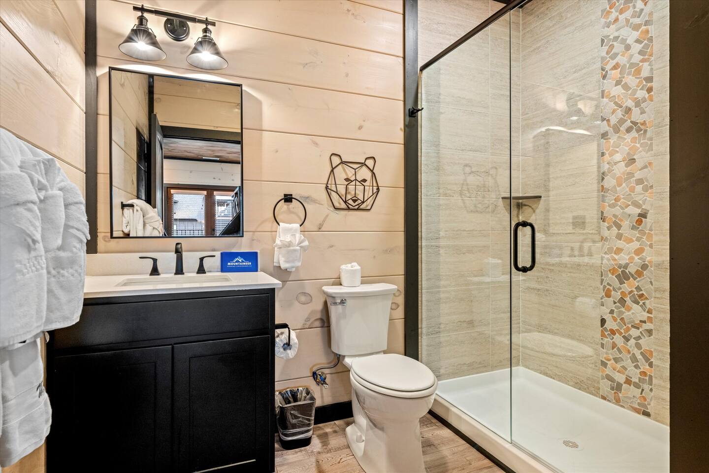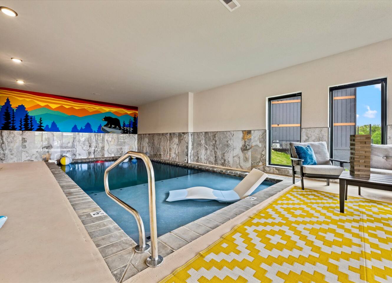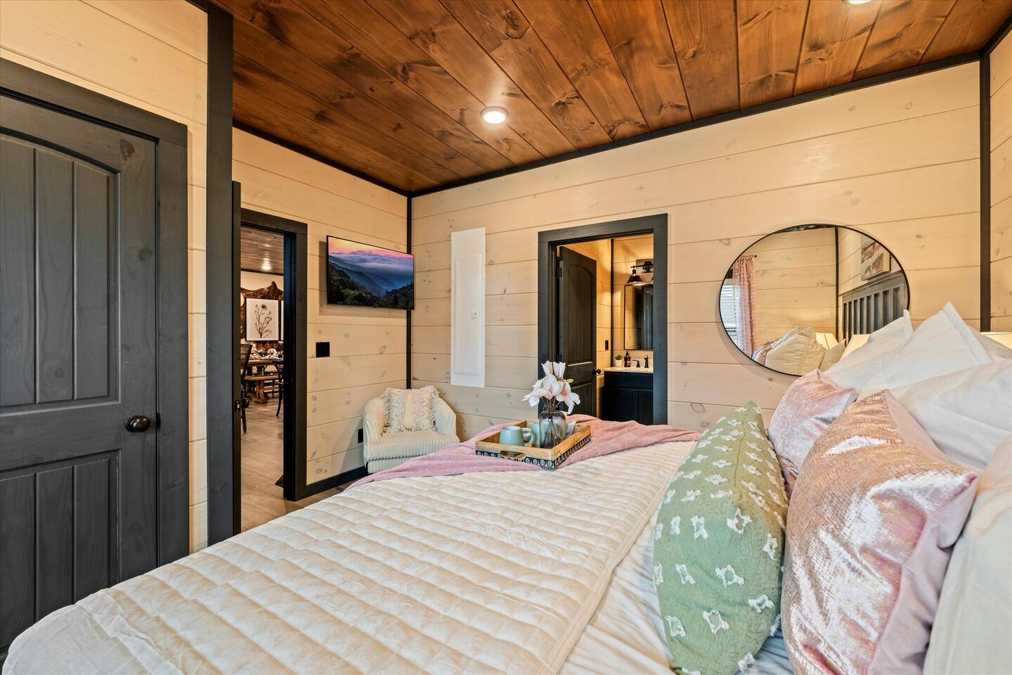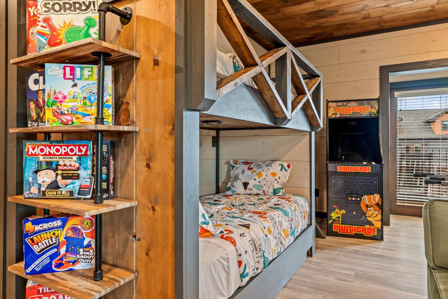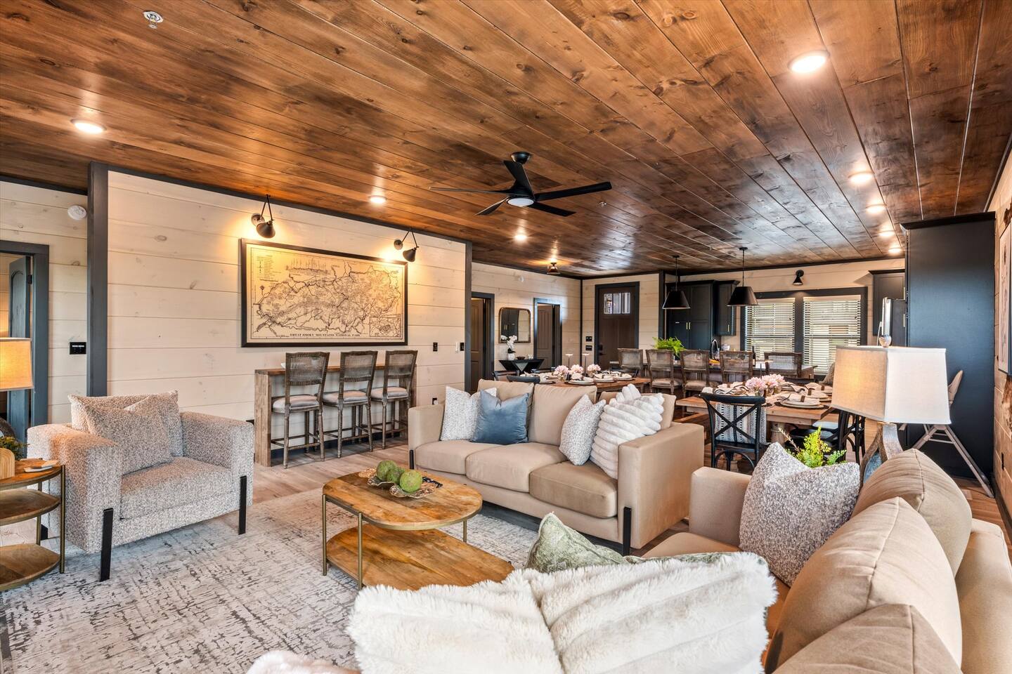Skip the Pigeon Forge traffic—we are only 1 mile from the Parkway! Paved, flat roads (no scary mountain driving) leading to a private resort paradise. 🌟Why Guests LOVE Kettle Knot Retreat🌟 ✅ No steep roads – smooth, flat, paved access ✅ FREE resort waterpark access (lazy river, infinity pool, mini golf & more) ✅ 6 Meticulously Designed Spacious Ensuite Bedrooms (Smart TVs in every room), Bunk room - sleeps 22 comfortably ✅ Private Indoor Pool & Hot Tub (heated to 82 degrees year-round) ✅ Ultimate Game Room – arcades, poker, karaoke, Foosball, dedicated movie theater, a kids' play zone with Teepee, ensuring entertainment for all ages without leaving the property. ✅ Toddler-friendly amenities – bassinet, high chair, baby gates, safe layout ✅ Movie Theater – 85” screen + Sonos surround sound ✅ Fully Stocked Kitchen – Instapot, air fryer, blender, dual coffee maker ✅ Tastefully designed outdoor patio spaces with Smoky Mountain Views + grills (gas & charcoal) ✅ 1 Mile to The Parkway – Minutes from Dollywood, The Island, and Pigeon Forge attractions 🛏️ Bedroom Layout & Sleeping Arrangements (Sleeps 22): Each bedroom is spacious, ensuite, and equipped with a Smart TV. ✔ Bedroom 1 – King Bed, TV, Ensuite Bathroom ✔ Bedroom 2 – King Bed, Futon, TV, Ensuite Bathroom ✔ Bedroom 3 – King Bed, TV, Ensuite Bathroom ✔ Bedroom 4 – Queen-over-King Bunk, TV, Ensuite Bathroom, Arcade Games ✔ Bedroom 5 – Queen Bed, TV, Ensuite Bathroom ✔ Bedroom 6 – King Bed, TV, Ensuite Bathroom ✔ Game Room – 2 Twin Bunk Sets w/ Private TVs, Pull-Out Sofa, Large TV, Bathroom with bath tub. ✔ Smart TVs in Every Room – Ready to log into your Netflix & chill ready 🍳 Fully Equipped Kitchen • Granite countertops, stainless steel appliances • Instapot, air fryer, blender, baking pans • Dual coffee maker (K-Cup & drip) + ice machine • Dining for 17 at the table + extra seating at island & bar 🏞 Outdoor Living ✅ Mountain-view patios with seating & grills (Gas grill (propane included), charcoal grill (BOY charcoal) ✅ Hot tub - Soak under the stars or watch the sunrise ✅ Outdoor dining and lounge area across multiple patios. 💦 Private Indoor Pool & Outdoor Hot Tub: ✅ Indoor Pool – 20' x 12', heated to 82°F year-round (3.5 ft deep) ✅ 10 Pool towels provided in addition to the bath towels 🧳 Resort Amenities at Smith Creek Reserve: [Nov-Feb]All water features will be closed, while others will remain open depending on weather conditions. Waterpark fully operational from March 1st onwards. ✅ Lazy River & Infinity Pool ✅ Outdoor Movie Theater & Cabanas ✅ Mini Golf, Pickle ball, Life-Size Games ✅ Large Hot Tubs, Fire Pits, Snack Bar (to purchase) 🎯 Location Highlights: • 1 Mile to The Parkway (No steep roads!) • 3 Miles to The Island in Pigeon Forge • 6 Miles to Dollywood • 12 Miles to Gatlinburg & Great Smoky Mountains National Park 🎮 In-Cabin Entertainment: ✅ 3 Multi-cade arcade machines ✅ Foosball, poker table ✅ Movie theater with 85" TV & Sonos surround sound ✅ Loft game room, board games, Smart TVs, and more 👶 Kid & Baby Friendly: ✅ Bassinet, high chair, baby gates on 2nd & 3rd floors ✅ Kid-friendly bunk area with dedicated bath ✅ Huge safe indoor areas for play 📍 Enjoy brand new resort amenities at a discounted rate while our neighboring community finishes its final touches. The cabin is highly insulated for a peaceful stay!