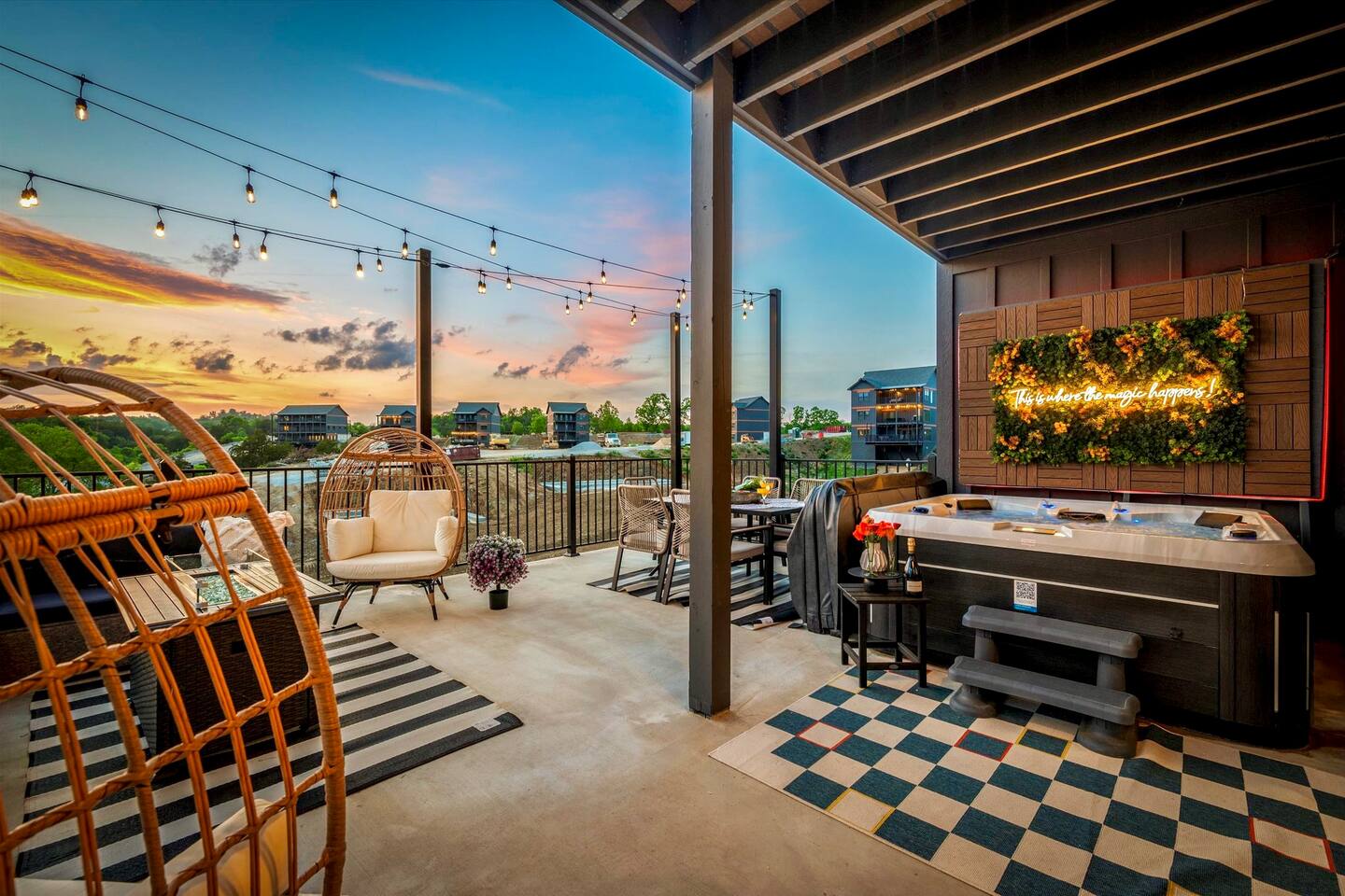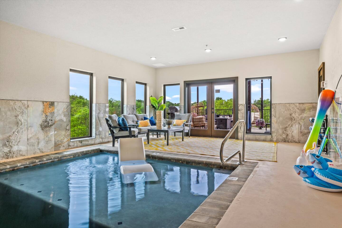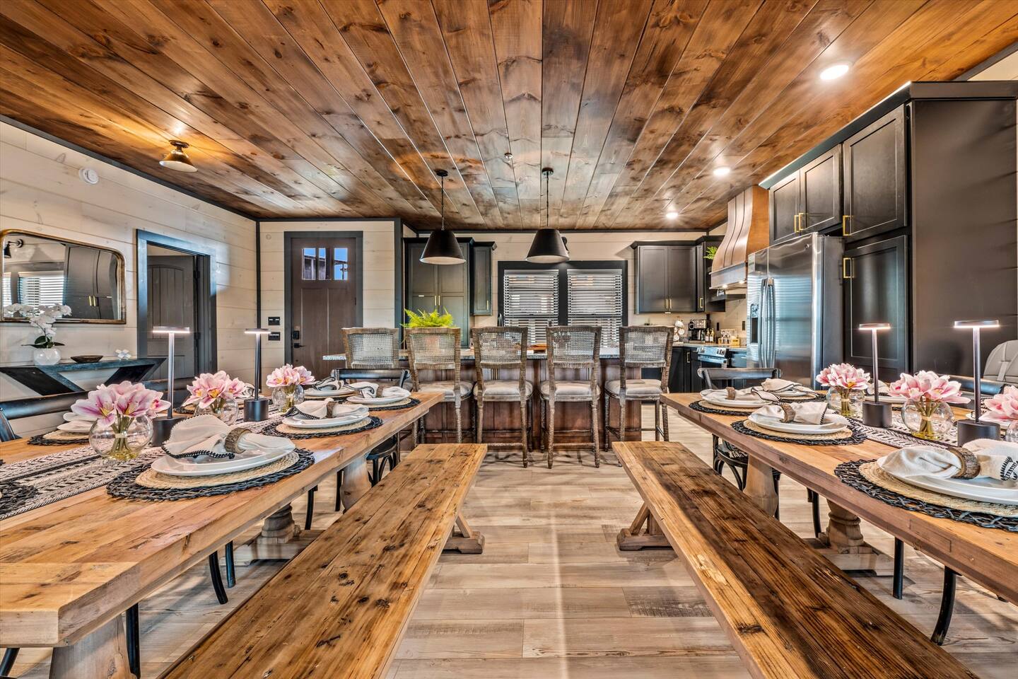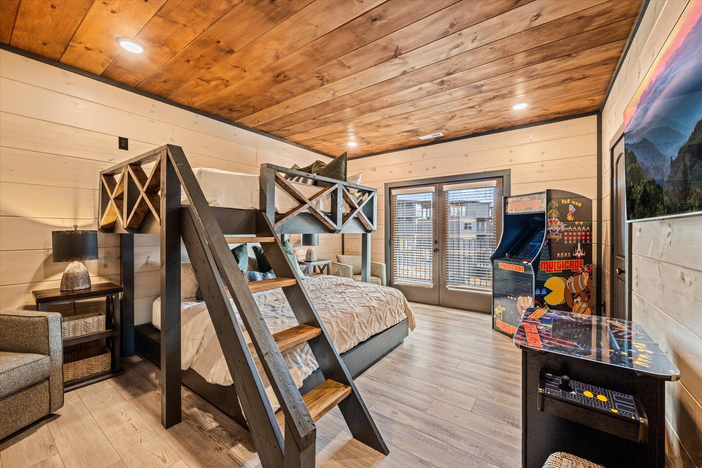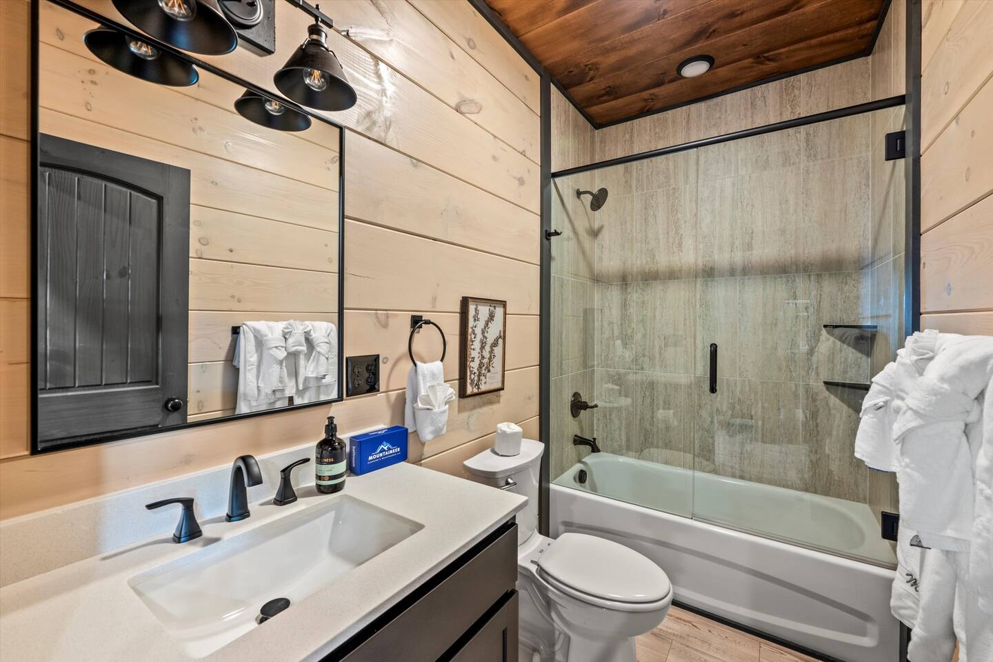 Skip the Pigeon Forge traffic—we are only 1 mile from the Parkway! Paved, flat roads (no scary mountain driving) leading to a private resort paradise. 🌟Why Guests LOVE Kettle Knot Retreat🌟 ✅ No steep roads – smooth, flat, paved access ✅ FREE resort waterpark access (lazy river, infinity pool, mini golf & more) ✅ 6 Meticulously Designed Spacious Ensuite Bedrooms (Smart TVs in every room), Bunk room - sleeps 22 comfortably ✅ Private Indoor Pool & Hot Tub (heated to 82 degrees year-round) ✅ Ultimate Game Room – arcades, poker, karaoke, Foosball, dedicated movie theater, a kids' play zone with Teepee, ensuring entertainment for all ages without leaving the property. ✅ Toddler-friendly amenities – bassinet, high chair, baby gates, safe layout ✅ Movie Theater – 85” screen + Sonos surround sound ✅ Fully Stocked Kitchen – Instapot, air fryer, blender, dual coffee maker ✅ Tastefully designed outdoor patio spaces with Smoky Mountain Views + grills (gas & charcoal) ✅ 1 Mile to The Parkway – Minutes from Dollywood, The Island, and Pigeon Forge attractions 🛏️ Bedroom Layout & Sleeping Arrangements (Sleeps 22): Each bedroom is spacious, ensuite, and equipped with a Smart TV. ✔ Bedroom 1 – King Bed, TV, Ensuite Bathroom ✔ Bedroom 2 – King Bed, Futon, TV, Ensuite Bathroom ✔ Bedroom 3 – King Bed, TV, Ensuite Bathroom ✔ Bedroom 4 – Queen-over-King Bunk, TV, Ensuite Bathroom, Arcade Games ✔ Bedroom 5 – Queen Bed, TV, Ensuite Bathroom ✔ Bedroom 6 – King Bed, TV, Ensuite Bathroom ✔ Game Room – 2 Twin Bunk Sets w/ Private TVs, Pull-Out Sofa, Large TV, Bathroom with bath tub. ✔ Smart TVs in Every Room – Ready to log into your Netflix & chill ready 🍳 Fully Equipped Kitchen • Granite countertops, stainless steel appliances • Instapot, air fryer, blender, baking pans • Dual coffee maker (K-Cup & drip) + ice machine • Dining for 17 at the table + extra seating at island & bar 🏞 Outdoor Living ✅ Mountain-view patios with seating & grills (Gas grill (propane included), charcoal grill (BOY charcoal) ✅ Hot tub - Soak under the stars or watch the sunrise ✅ Outdoor dining and lounge area across multiple patios. 💦 Private Indoor Pool & Outdoor Hot Tub: ✅ Indoor Pool – 20' x 12', heated to 82°F year-round (3.5 ft deep) ✅ 10 Pool towels provided in addition to the bath towels 🧳 Resort Amenities at Smith Creek Reserve: [Nov-Feb]All water features will be closed, while others will remain open depending on weather conditions. Waterpark fully operational from March 1st onwards. ✅ Lazy River & Infinity Pool ✅ Outdoor Movie Theater & Cabanas ✅ Mini Golf, Pickle ball, Life-Size Games ✅ Large Hot Tubs, Fire Pits, Snack Bar (to purchase) 🎯 Location Highlights: • 1 Mile to The Parkway (No steep roads!) • 3 Miles to The Island in Pigeon Forge • 6 Miles to Dollywood • 12 Miles to Gatlinburg & Great Smoky Mountains National Park 🎮 In-Cabin Entertainment: ✅ 3 Multi-cade arcade machines ✅ Foosball, poker table ✅ Movie theater with 85" TV & Sonos surround sound ✅ Loft game room, board games, Smart TVs, and more 👶 Kid & Baby Friendly: ✅ Bassinet, high chair, baby gates on 2nd & 3rd floors ✅ Kid-friendly bunk area with dedicated bath ✅ Huge safe indoor areas for play 📍 Enjoy brand new resort amenities at a discounted rate while our neighboring community finishes its final touches. The cabin is highly insulated for a peaceful stay!